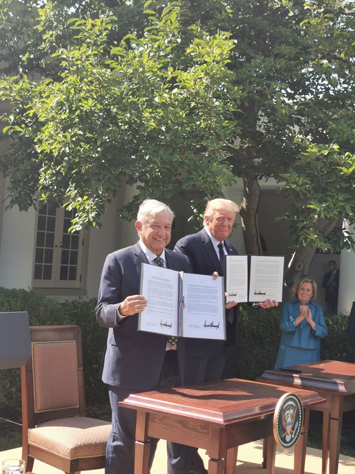 El presidente de México, Andrés Manuel López Obrador, y el estadounidense, Donald Trump, firman declaración conjunta; esto tras un mensaje en el que aseguraron que el T-MEC traerá grandes beneficios a México, Canadá y Estados Unidos.