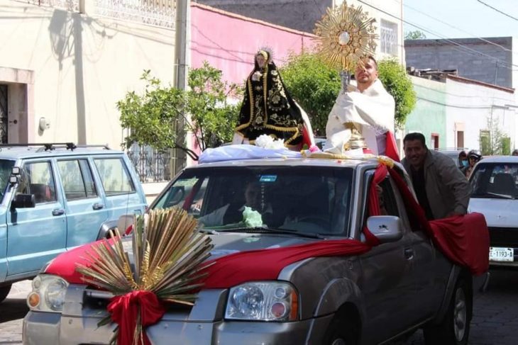 Jerez, Zac.- En un hecho histórico para el municipio, sacerdotes de la Iglesia Católica realizaron un recorrido con el Santísimo Sacramento y la Virgen de la Soledad para dar la bendición a la ciudadanía ante la emergencia sanitaria por Covid19.