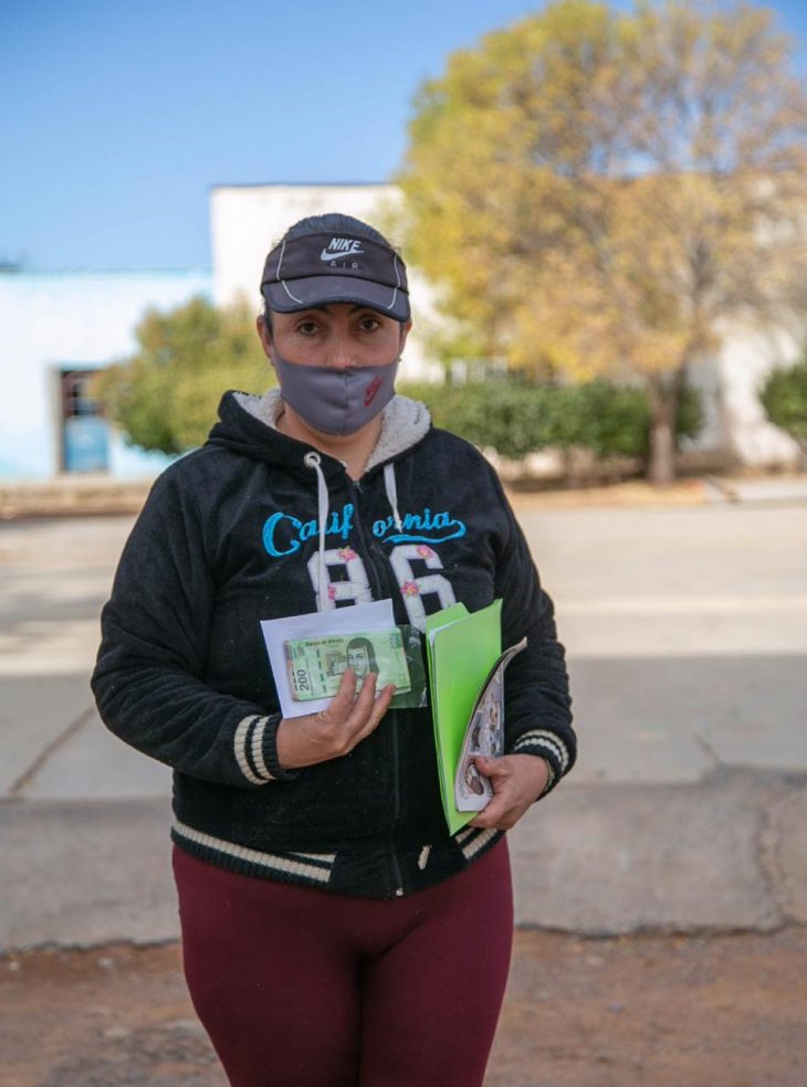 Este lunes se distribuyeron más de 7 millones de pesos para entregar 3 mil 200 pesos a cada una de las familias beneficiarias.