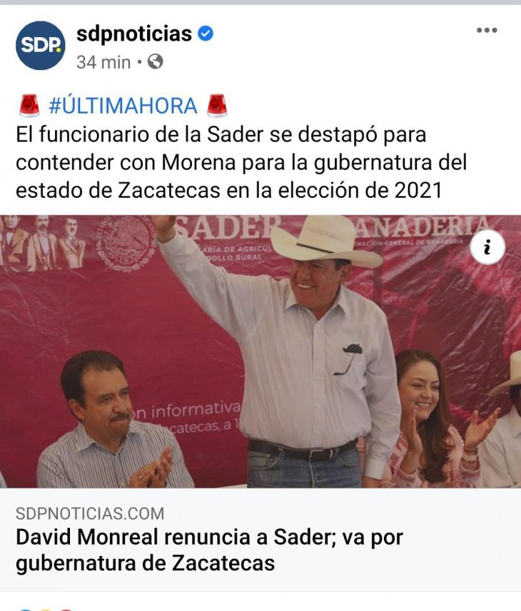 Zacatecas.- Tras el mensaje en el que David Monreal Ávila anunció que irá a la lucha por la transformación de Zacatecas, los medios de comunicación a nivel nacional Proceso, Milenio, Reforma, MVS, Excelsior, El Heraldo, Latinus, SDPNoticias y Joaquín López Dóriga destacaron la intención del político fresnillense de contender por la gubernatura de Zacatecas.
