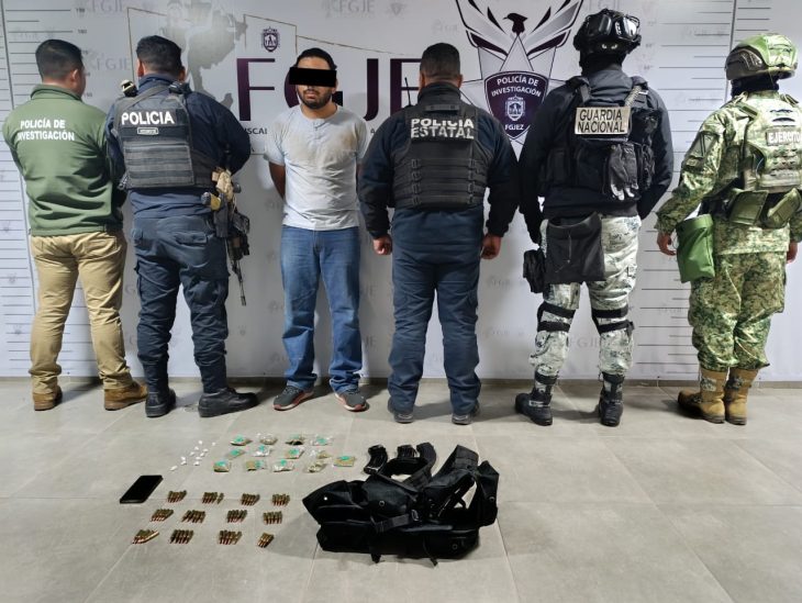 Guadalupe, Zac., 23 de agosto de 2025.- Elementos de la Policía Metropolitana y Policía Estatal, en coordinación con el Ejército Mexicano y la Guardia Nacional, lograron la detención de un masculino en posesión de sustancia ilícita en el fraccionamiento Valle del Conde, municipio de Guadalupe.