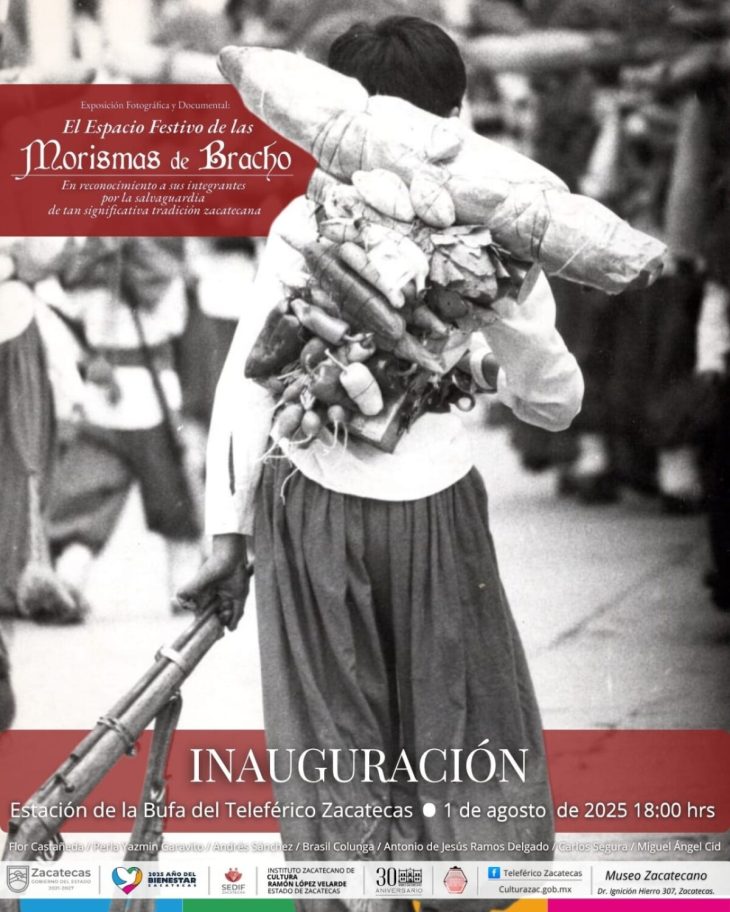 Zacatecas, Zac., 29 de julio de 2025.- El Gobierno de Zacatecas, encabezado por el mandatario estatal David Monreal Ávila, inaugurará la exposición fotográfica y documental “El espacio festivo de las Morismas de Bracho”, un reconocimiento a la labor de sus integrantes, por la preservación y salvaguarda de una de las tradiciones más significativas del patrimonio cultural zacatecano.