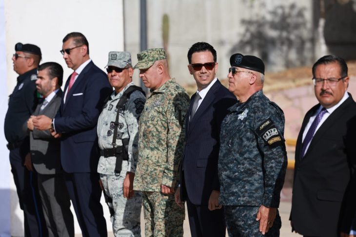 Tuvieron participación en el evento el Jefe de Estado Mayor del Cuartel General de la Decimoprimera Zona Militar, Hugo Carmona Ortiz; el Coordinador Policial de la Guardia Nacional, Cesáreo Juventino Rojas Popoca; el Secretario de Seguridad Pública, Arturo Medina Mayoral; el Fiscal General de Justicia del Estado, Cristian Paul Camacho Osnaya; el Delegado de la Fiscalía General de la República, Francisco Javier Esquivel Cruz; el Jefe de Estación del Centro Nacional de Inteligencia, Juan Gabriel Sosa Pinto; el Secretario Técnico de la Mesa de Construcción de Paz y Seguridad, Osvaldo Cerrillo Garza; el Subsecretario de Operación Policial, Ginés Jaime Ruiz García; el Subsecretario de Prevención y Reinserción Social, Rafael Lomelí Martínez, y el Subdelegado regional de los Programas del Bienestar, Carlos Alberto Acevedo Saucedo.