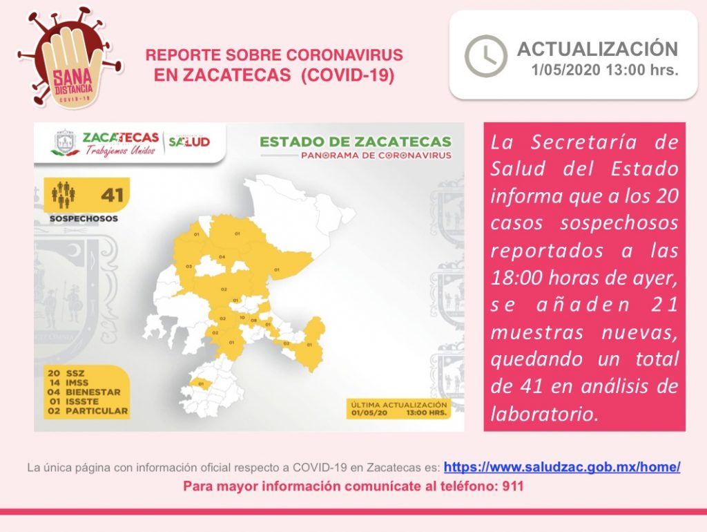 Aumentan casos sospechos de Coronavirus en Zacatecas.1 mayo 2020Zacatecas Al MinutoNacionales907 Views coronavirus Previous postDesactivan Alerta Ámber por falsedad de la supuesta madre. Next postDetienen camión proveniente de Estados Uunidos.About author View all posts Zacatecas Al Minuto
