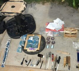 El resultado de este procedimiento fue el aseguramiento de 20 bolsas de cristal laminado, cuatro envoltorios con polvo blanco, probable cocaína. 10 bolsas que contenían hierba verde y seca...