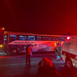 Zacatecas.- El choque de un autobús de pasajeros y un tráiler durante la madrugada dejó un saldo de al menos 10 heridos y un muerto en una carretera en Zacatecas.
