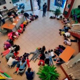 En la principal biblioteca de Fresnillo se simuló que en el exterior del edificio había una balacera