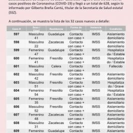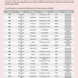 Registran 22 nuevos casos de Coronavirus en Zacatecas;...