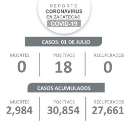 Reporta SSZ 18 nuevos casos de COVID-19; no hay muertes ni recuperados.