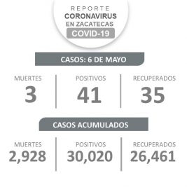 Supera Zacatecas los 30 mil contagios de COVID-19, se han recuperado más de 26 mil y han fallecido cerca de 3 mil.