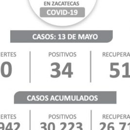 50 contagios de COVID-19, un deceso y 57 recuperados, saldo de fin de semana en Zacatecas.