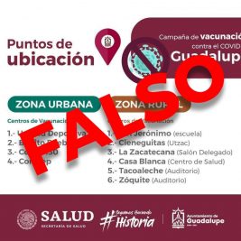 Falsa información difundida sobre aplicación de vacuna contra el Covid-19 en el municipio de Guadalupe, Zacatecas.