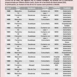 Confirman 55 nuevos casos de Coronavirus en Zacatecas.