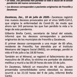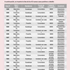 Detectan 42 nuevos casos de Coronavirus en Zacatecas.