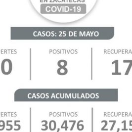 Hoy no reporta Zacatecas defunciones por COVID-19; hay ocho nuevos contagios y 17 recuperados.
