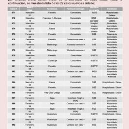 Zacatecas.- Autoridades de los Servicios de Salud de Zacatecas (SSZ) informaron 27 nuevos casos de Coronavirus, teniendo un total de casos acumulados de 997.