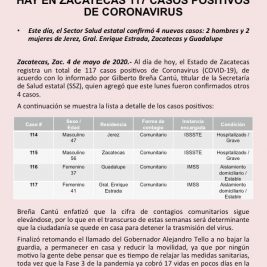 4 nuevos casos de coronavirus; sube a 117 casos...