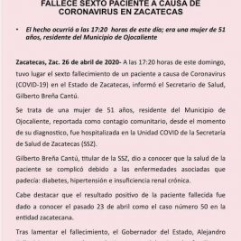 Fallece séptimo zacatecano por Coronavirus; era de...