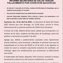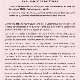 Confirman 4 nuevos casos de Coronavirus en Zacatecas;...