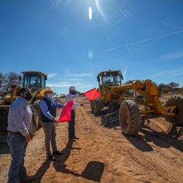 David Monreal da banderazo de arranque a los trabajos de construcción del libramiento en la comunidad Chaparrosa, en Villa de Cos.
