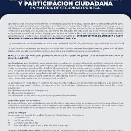 Convocan a zacatecanos a conformar el Consejo Estatal de Consulta y Participación Ciudadana en Materia de Seguridad