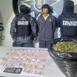 Policías Estatal y Metropolitana detienen a un masculino por posesión de cerca de 5 kilogramos de probable marihuana