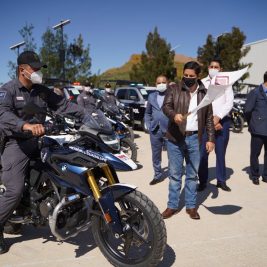 Recibe Jorge Miranda Castro patrullas y motocicletas para la Dirección de Seguridad.