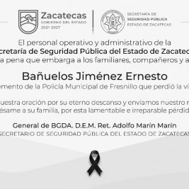 Policía de Fresnillo muere tras ataque a balazos al concluir turno.