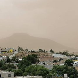 Zacatecas.- Este miércoles usuarios subieron a redes sociales imágenes sobre una inusual tormenta de arena en las calles del municipio de Sombrerete, Zacatecas.