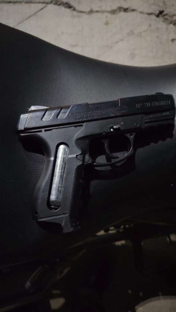Fresnillo, Zac., 24 de agosto de 2025.- En acciones de vigilancia sobre la calle Prolongación García Salinas, municipio de Fresnillo, elementos de la Fuerza de Reacción Inmediata Zacatecas (FRIZ) detuvieron a un masculino en posesión de probable droga y una réplica de arma de fuego.