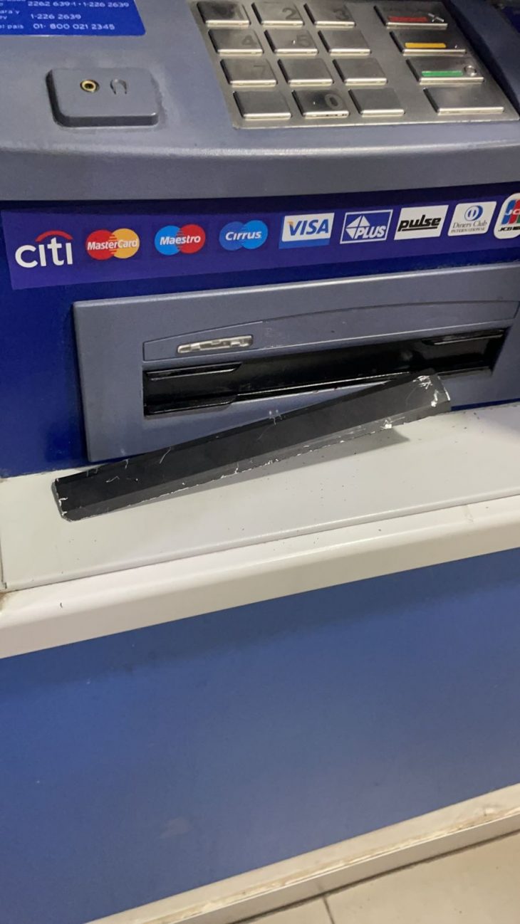 Durante el proceso de inspección, los policías lograron identificar una regleta de plástico en color negro colocada en la parte de donde se toma el efectivo para obstruir su salida, por lo que de manera inmediata fue retirada evitando así que usuarios fueran víctimas.